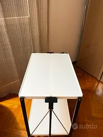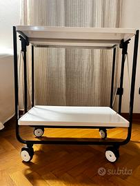 Carrello pieghevole vintage, struttura nera e acciaio ripiani bianchi. Funzionante perfettamente