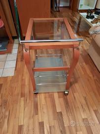 carrello porta vivande in legno col.miele e vetro con 3 ripiani mis. h73 cm lar.max 76 cm prof.45 cm