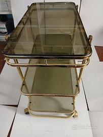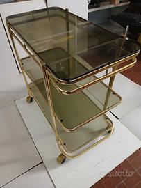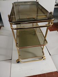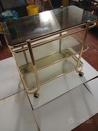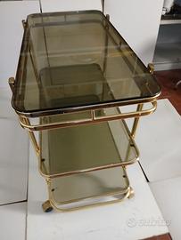 Carrello portabottiglie in ottone e vetri fume' questi ultimi come l'attore assolutamente ben conservati privi di graffi o scheggiature. Forse l' unica difficoltà è data dalla spedizione; meglio sarebbe il ritiro diretto. Io sono di Alessandria, zona circonvallazione, facilissima da raggiungere dall' uscita di qualsiasi autostrada. Se qualcuno è interessato, nell' arco di 30 Km. sono, previo accordo economico, a collaborare. Misure: cm. 43 x 80 h. cm. 77. Ripiano + in basso cm.15 da terra. Distanza dal ripiano centrale cm. 27/ 28 tra il + in alto e il medio cm.33. Prezzo, come sempre, ragionevolmente trattabile.