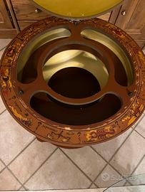 Si apre e all’interno vengono posizionate le bottiglie, veniva usato molto spesso nei ristoranti , che alla fine della cena portavano al tavolo questo carrello e mostravano i distillati vari che il cliente poteva gradire .