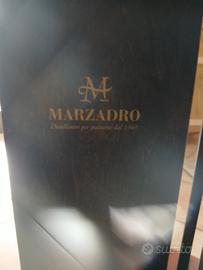 Carrello portabottiglie in legno, sospeso su quattro rotelle che lo rendono mobile. Diviso in due piani. Il piano basso separa tre settori dove possono essere infilate numerose bottiglie.