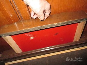 Carrello portaliquori in legno massello anni 50 da rivedere, misure cm 72,5*40*h80. Prezzo non trattabile. Disponibili, per inutilizzo, 1 carrello portatv, 1 vetrina a cilindro, 1 salotto formato da 1 parete attrezzata, 1 tavolino e 4 mensole, mobili per cameretta: 1 scrivania color ciliegio, 2 mensole lunghe (1 gialla della "Doimo" e 1 arancione e 4 pensili a forma di cubo), ecc.