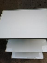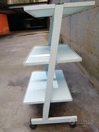 Carrello portaoggetti a tre piani (i ripiani sono in paline) completo di rotelle, adatto a studio di estetista, parrucchiera, ecc) vendo causa inutilizzo, (uno dei tre ripiani ha un angolo leggermente sbeccato)