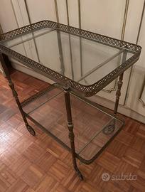 Carrello vintage portaoggetti con ruote. In cristallo e ottone. In buone condizioni. Dimensioni 70x40cm, altezza 72cm. Sono disponibile anche a portarlo a Milano.