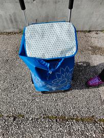 Vendo causa inutilizzo carrello portaspesa saliscale marca Gimi. La capacità della sacca é di 56 L e la portata di 30 kg. Telaio in acciaio. Dimensioni: Lunghezza 51 cm Profondità 41 cm Altezza 102 cm