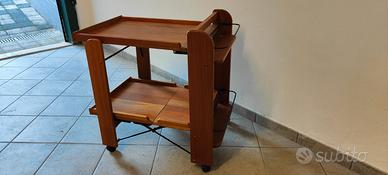 Carrello portavivande da salotto/soggiorno/cucina a 2 ripiani in legno color ciliegio e supporti in metallo. Molto solido e ben costruito,dotato di ruote per comodo trasporto ( nel caso bloccabili ).