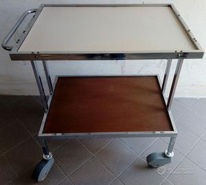 Carrello Portavivande Professionale con piano estraibile struttura in Acciaio cromato e piani in laminato con possibilità di mettere cupola plexiglas e 3°piano centrale misure larghezza 75 x profondità 50 altezza 80 cm. e smontabile ritiro su Grosseto o Roma con accordi o altrimenti per spedizione devo smontarlo ci sono solo poche viti.