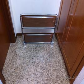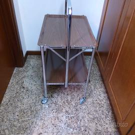 vendo carrello di servizio portavivande pieghevole vintage anni 70 originale prodotto da Speedy telaio cromato e ripiani in formica marrone designe industriale in perfette condizioni senza segni d'usura misure aperto cm63x41x85h.chiuso cm63x7x85h come nuovo