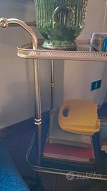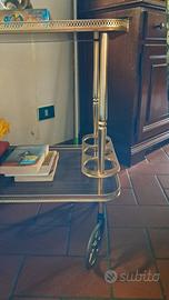 Carrello vintage anni '60/'70 con piano in formica tipo legno e profili dorati.