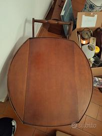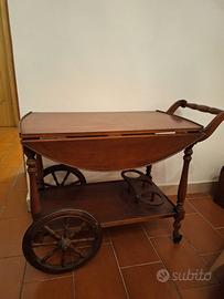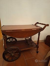 Carrello portavivande vintage in legno con sponde ribaltabili e ruote girevoli, anni '60.