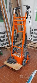Carrello saliscendi per il trasporto su scale di porte blindate e serramenti. Solleva fino a 104 cm di altezza e una portata di 170/250kg. Modello RD158 TB elettrico con certificazioni. Si inserisce in furgone direttamente con il carico. Regolazione verticale e laterale.