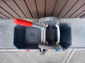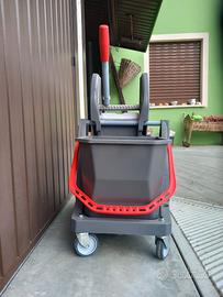 Carrello grigio con due secchi,come nuovo.Agganciabile al carrello porta rifiuti che non ho.Secchi da 15 litri.
