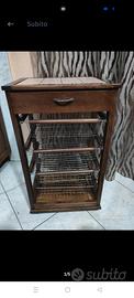 Carrello slim cucina legno portafrutta stretto 3cestini cassetto ripiano mattonelle salvaspazio ciliegio-naturale-bianco-noce