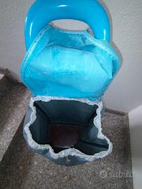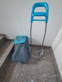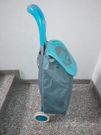 Carrello-borsa spesa color azzurro grigio, capiente, tasca sul retro con chiusura a cerniera, borsa smontabile dal carrello con carrello richiudibile. Usato ma in ottimo stato