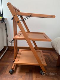 Carrello/ tavolino con rotelle, di Foppapedretti. Nelle foto sono evidenziati i piccoli difetti di usura. Misure: larghezza 40 cm, profondita 47 cm, altezza 92 cm.