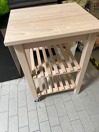 Carrello, tavolino , porta fornetto o altro , marca ikea modello Bekvam tutto in faggio, con due ruote su un lato. Bello e robusto , come nuovo . Misure 58x50. Valore nuovo 69 euro vendo 40.