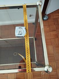 Carrello tavolino ottone e vetro porta tv vintage anni 70, mancante del piano centrale, ritiro a mano per difficoltà imballaggio per la spedizione, zona Cerea (VR)