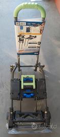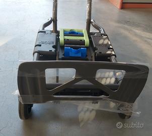 Struttura in acciaio con pistra di supporto pieghevole. Carrello ultra compatto richiudibile con un solo clic, grazie alla levetta centrale.