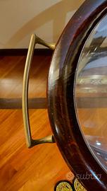 Carrello vintage anni 50 con vassoio mobile. Carrello in legno e vetro con elementi in ottone. Il vassoio superiore è mobile. Ottime condizioni generali ma necessita di fissare meglio una gamba. Solo pagamenti in contanti e consegna sul posto.