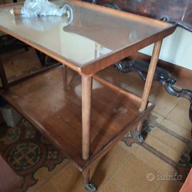 carrello da salotto porta bevande , vintage originale anni 50, in noce con superficie in vetro.