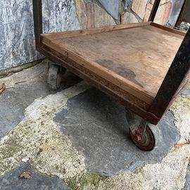 carrello vintage con ruote utilizzato in officina realizzato in ferro e legno utilizzato fino allo scorso mese misura circa 90 x 40 h 80 cm da vedere e ritirare a cossato bi su appuntamento 3472237276 SOLO RITIRO