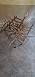 Carrettino giocattolo in legno con balestre e ruote in ferro, produzione anni '30 lunghezza: 130 cm larghezza: 60 cm altezza: 71 cm