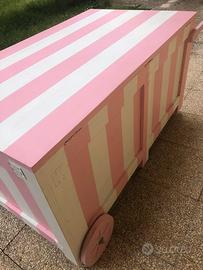 Realizzato con struttura solida e rifinito con originale verniciatura a righe rosa e bianche, che lo rende perfetto anche come elemento scenografico per mercatini, fiere, eventi o negozi.
