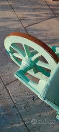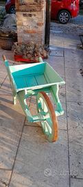 Carriola tipica in legno di 100 anni fa, tinteggiata con colore