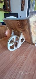 vendo carriola decorativa in legno, realizzata artigianalmente (lavorata a mano ) con legno . trattato a cera.È ideale come portavasi o portaoggetti.le missura sono :