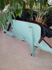 CARRIOLA IN LEGNO COLORE VERDE PORTA FIORI PERFETTA MOLTO PARTICOLARE (SENZA PIANTE)