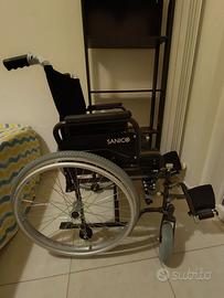 Sanico Carrozzina Autospinta con Telaio in Acciaio a Croce Singola, Portata 120 kg, Seduta 45cm, Braccioli Pieghevoli, Poggiapiedi Rimovibili - Nero