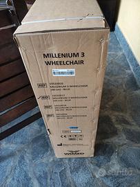 La Millenium 3 è una carrozzina per disabili ad autospinta, con telaio pieghevole in acciaio verniciato blu, ideale per casa, esterni e trasporto in auto. Leggera (16 kg) ma robusta (portata 130 kg), offre massimo comfort e versatilità.