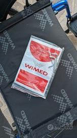 - Appoggiagambe ribaltabili ed estraibili, pedane regolabili in altezza e dotate di cinturino ferma tallone regolabile. Forma esagonale anti rotazione della pedana.