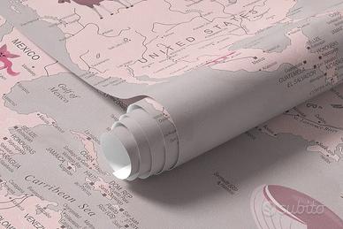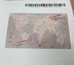 Vendo carta da parati per cameretta, con motivo cartina geografica vintage, marca uWalls.