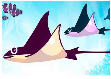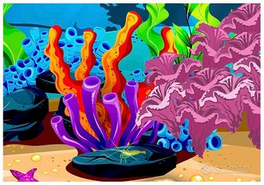 Animali marini colorati su sfondo di acqua blu.