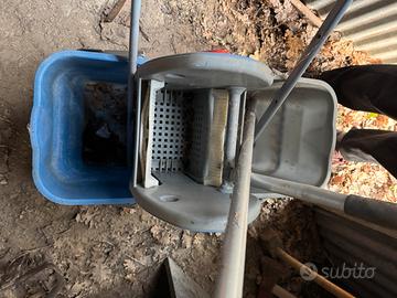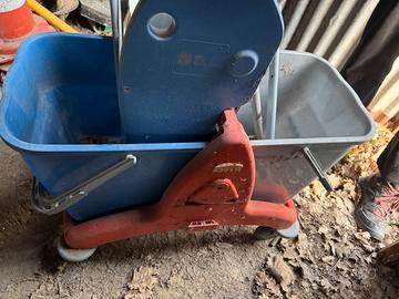 Carrello per la pulizia professionale completo di supporto mop. Il carrello in foto è solo impolverato. Buono stato di conservazione