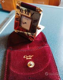 orologio da tavolo/viaggio oggetto da collezione anni 90 piccoli segni di usura placcato oro e smalto