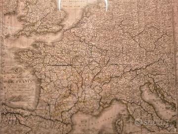 La mappa rappresenta la Francia e gran parte dell’Europa occidentale con dettagliate suddivisioni politiche dell’epoca. Incisione originale con colorazione coeva a mano.