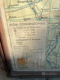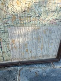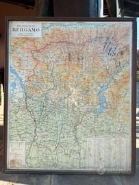 Cartina topografica di Bergamo e provincia incorniciata con vetro Richiede parziale restauro di pulizia interna e lucidatura cornice. Misure 82x97 profondità 3cm No spedizione solo ritiro in loco