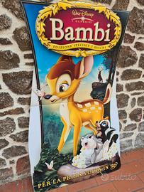 Cartonato promozionale vintage del film “Bambi” targato Disney, un pezzo raro e nostalgico che riporta alla magia dell’animazione classica. Stampato su supporto rigido e di grande impatto visivo, questo cartonato è pensato per esposizioni, vetrine o collezionisti di materiale pubblicitario d’epoca Disney.