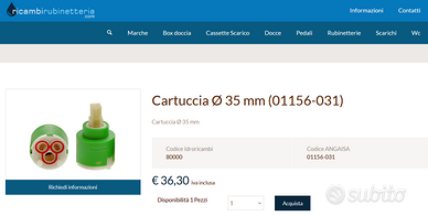 Cartuccia per miscelatore monocomando, diametro 35 mm, acquistata in data 09/01/2026 presso il rivenditore specializzato Idroricambi di Milano.