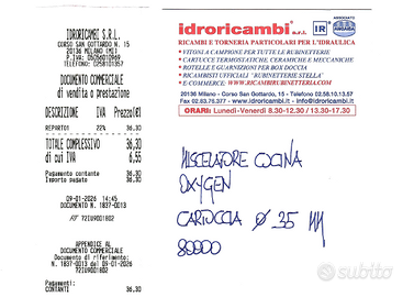 •Prezzo di acquisto: € 36,30 (documentato da scontrino/ricevuta).