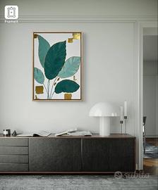 Quadro acrilico con foglie d’oro,realizzato a mano con texture,per qualsiasi ambiente.Venduto senza cornice. 70x50
