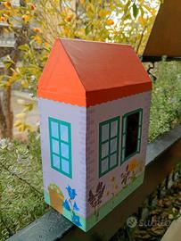 Scatola in cartone rigido a forma di casetta.Al suo interno un meraviglioso,curato e dettagliato angolo di casa. Una camera da letto...arredata e piena di oggetti.Carta da parati floreale,lampadario ,tanti quadri. Un comodino con sopra un bellissimo telefono d'epoca.Una cesta con dentro una chitarra.Sotto al letto un paio di ciabattine!!! Ricco di dettagli. Bellissimo oggetto d'arredo. Pezzo unico.♥️Idea regalo perfetta per stupire!!🎁😍
