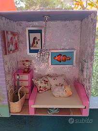 Casa delle bambole con gattino in camera da letto!