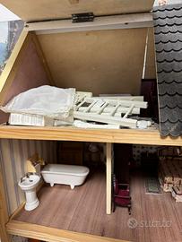 X gli amanti delle case delle bambole…casa stile Georgiana da sistemare la mansarda con i suoi mobili e balconata davanti..(i pezzi tutto messo in mansarda)…pezzi originali anni 80..tenuta in cantina..da pulire e ristrutturare un pochino!!! Molto bella…misura 61 cm larghezza..66 cm altezza…profondità interna 37 cm….profondità casa compreso i balconi 48cm…