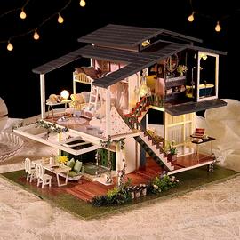 Miniatura casa già costruita in legno, con illuminazione, con musica e copertura in plexigas.