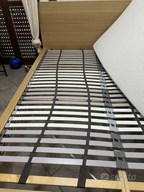 Meno di 12 mesi di uso. Letto matrimoniale king-size con materasso. Usato da meno di un anno. Lo compro perché lo spazio in camera da letto è piccolo, quindi devo sostituire il letto con uno più piccolo per mettere una scrivania e lavorare da casa.