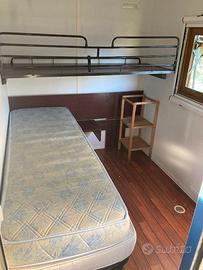 Vendo una casa mobile Shelbox 4 stagioni. Misure: 8 x 3 m. Ingresso su soggiorno composto da cucina e divano, bagno completo di wc lavandino e doccia, camera matrimoniale, cameretta 3 posti letto, secondo bagno che noi avevamo usato come lavanderia, però volendo si può utilizzarlo come il secondo bagno. Dotato di aria condizionata che funziona sia per raffrescare che per riscaldare la casa.