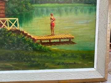 L’opera raffigura una casa immersa sul lago con un bagnante sul pontile.